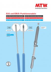 detaillierte Information EUS und EBUS-Punktionsnadeln EUS-FNB-Punktionsnadeln (Edelstahl) EUS-FNA-Punktionsnadeln (Edelstahl) EBUS-TBNB-Punktionsnadeln (Edelstahl) EBUS-TBNA-Punktionsnadeln (Edelstahl) EUS-FNB-Punktionsnadeln (Nitinol) EUS-FNA-Punktionsnadeln (Nitinol) • optimale Sicht der Kanüle durch „Lochstruktur“ unterhalb der Nadelspitze • knickstabiler Nitinol-Mandrin • leichtgängiger, knickstabiler Kunststoff-Einführtubus • hochflexbile knickstabile Varianten: Edelstahl & 100% Nitinol Nadeln Bestell-Nr. Artikel Beschreibung Schliff Nadel Ø Gauge Nadel mm Ø mm Länge mm VE UN-A-19-11-80-16-1375 FNA Edelstahl EUS FNA Edelstahl EUS UN-B-22-07-80-16-1375 FNB Edelstahl EUS UN-A-22-07-80-16-1375 Facettenschliff Facettenschliff Kronenschliff S U P M Y L O M L I F I J U F X A T N E P UN-D-22-07-80-16-1375 FNB Nitinol EUS UN-C-22-07-80-16-1375 FNA Nitinol EUS Kronenschliff Facettenschliff S U P M Y L O M L I F I J U F UN-A-19-11-50-16-715 UN-A-22-07-50-16-715 UN-B-22-07-50-16-715 EBUS-TBNA, Edelstahl Facettenschliff EBUS-TBNA, Edelstahl Facettenschliff EBUS-TBNB, Edelstahl Kronenschliff X A T N E P UN-A-22-07-50-16-670 UN-A-19-11-50-16-670 UN-B-22-07-50-16-670 EBUS-TBNA, Edelstahl Facettenschliff EBUS-TBNA, Edelstahl Facettenschliff EBUS-TBNB, Edelstahl Kronenschliff Technische Änderungen und Bildabweichungen vorbehalten. TW-Endoskopie W. Haag KG I Goldsbergstraße 18 I D-46487 Wesel Tel +49 2803 9120-0 I info@mtw-endoskopie.com I www.mtw-endoskopie.com 19 22 22 22 22 19 22 22 22 19 22 1,1 0,7 0,7 0,7 0,7 1,1 0,7 0,7 0,7 1,1 0,7 1,6 1,6 1,6 1,6 1,6 1,6 1,6 1,6 1,6 1,6 1,6 1375 1375 1375 1375 1375 715 715 715 670 670 670 1 1 1 1 1 1 1 1 1 1 1 E D 5 2 0 2 . 1 1 / 1 7 1 2 : . r N - . g e R